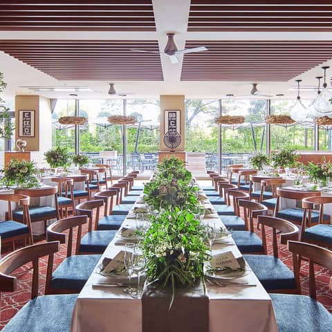 おふたり専属のプランナーが最新トレンドの演出もご希望に合わせでプランニング!一面の大きな窓から臨める緑、降り注ぐ陽光が開放感溢れるオシャレな空間で、ゲストと楽しむアイデアを、ロサンジェルスバルコニーのスタッフが一緒に叶えます。