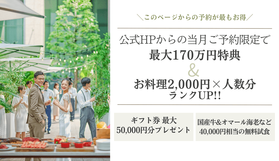 適用期間2024/04/18〜2026/03/31絶品国産牛フィレ&オマール海老など豪華4万円相当の婚礼料理試食付♪
